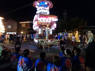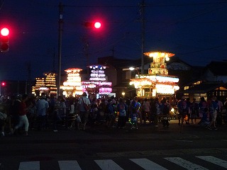 28日(日)の夜7時からの「山車揃え」には、亀崎公園前に5両の山車がならび幻想的な光景が見られました。
