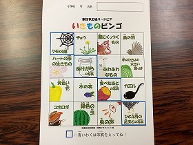 いきものマップと「いきものビンゴ」をもらって、さがしだしたものに〇をつけていきました。