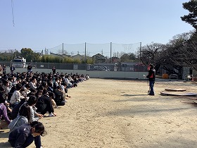 その後、5年生は煙体験、その他の学年は水消火器訓練を見ました。