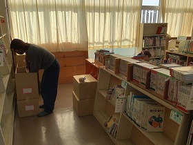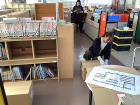 図書室は、書棚の段ごとに箱詰めしなければなりません。