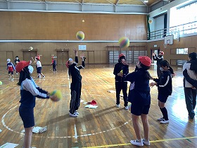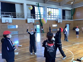 ◇6年生 体育 ボール運動です。冊子を見ながら挑戦中です。