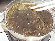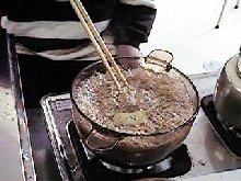 細かくなったケナフをアルカリで煮ます。 |