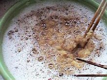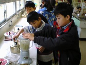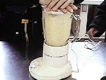 でんぷんのりとパルプをミキサーにかけます |