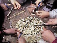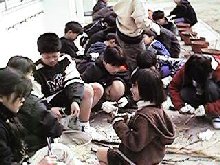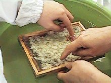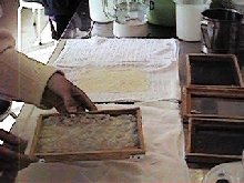 小さな種から、大きなケナフになって、ケナフからたくさん紙が作れて感激しました。 (あすか) いい紙ができてよかったです。(みほ) 自分流の紙ができあがりました。(だいすけ) 紙作りのたいへんさがわかり、これからは紙を大切にしようと思いました。(かずひろ) 思ったよりたくさんの紙ができあがりました。(あきら) |